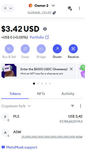 - Zichtbaar in MetaMask: 21.000.000.000.000.000.000.000.000 ASW